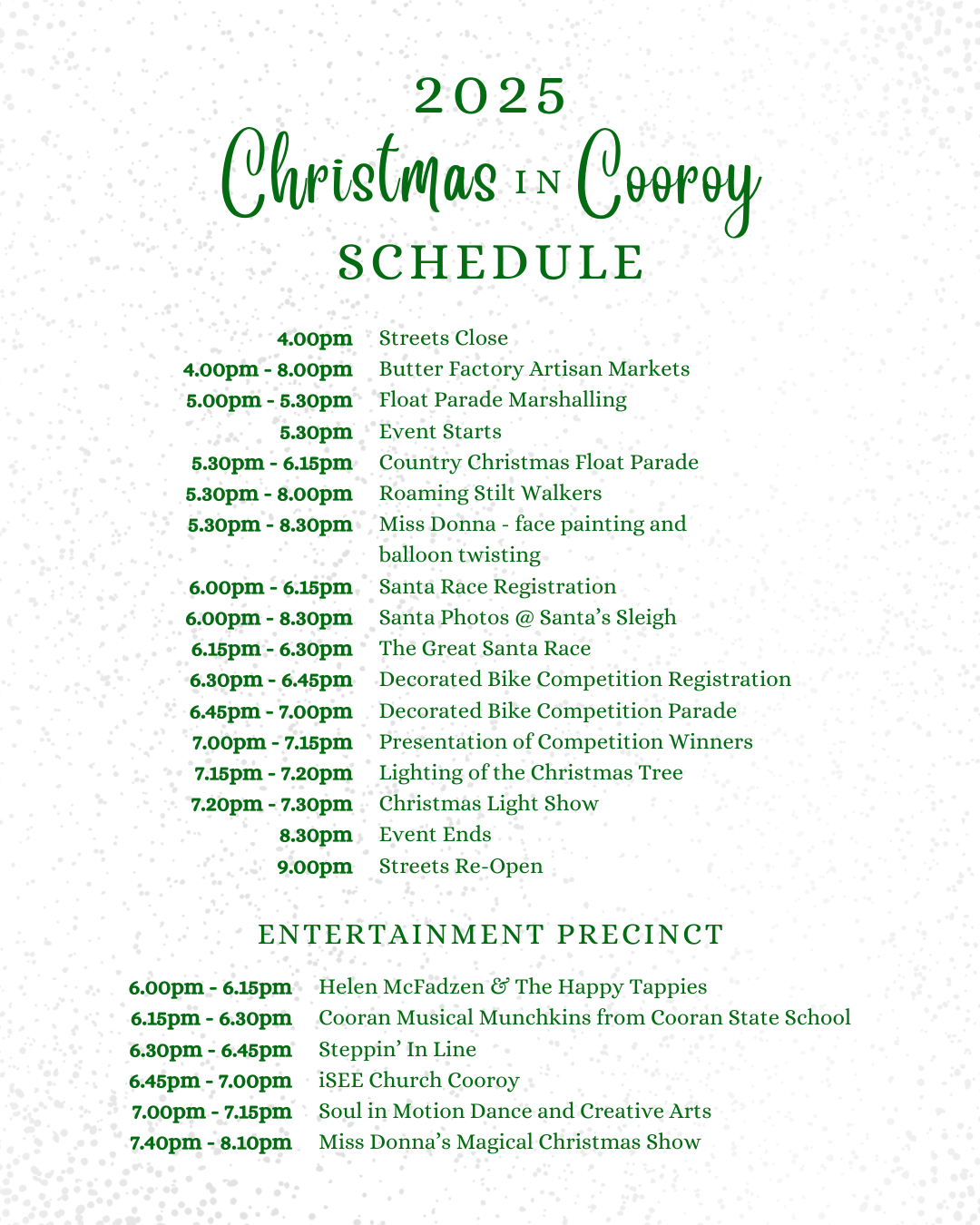 Join us as we celebrate on Friday 12th December 2025 with a magical evening filled with family-friendly entertainment and holiday cheer, all made possible by the generous support of our local businesses.